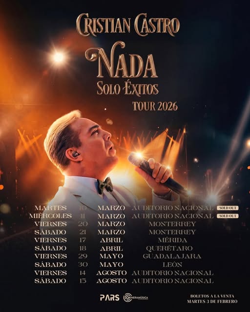 “Nada Solo Éxitos” – Tour 2026 no es una gira más en la agenda del artista. Es una celebración de su legado, una reafirmación de su impacto en la música latina y una oportunidad para que nuevas generaciones descubran —o redescubran— la fuerza de sus interpretaciones. Cristian Castro demuestra que, más allá de las modas, las grandes canciones y las voces auténticas siempre encuentran su camino de regreso al escenario.
