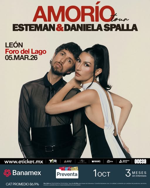 Así que ya lo sabes: el jueves 5 de marzo de 2026, el amor se escuchará fuerte y claro en León. Esteman y Daniela Spalla te esperan para vivir juntos una noche de pasión, arte y pura conexión en el “Amorío Tour”. 🌹✨