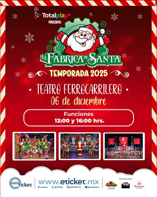La época más esperada del año se acerca, y con ella regresa la ilusión, los villancicos y la alegría familiar. Este 2025, la Ciudad de México se llena de espíritu navideño con el espectacular show La Fábrica de Santa, una experiencia mágica que promete encender los corazones de chicos y grandes por igual. El evento se llevará a cabo el sábado 6 de diciembre de 2025, en el Teatro Ferrocarrilero Gudelio Morales, con dos funciones especiales a las 12:00 y 16:00 horas.