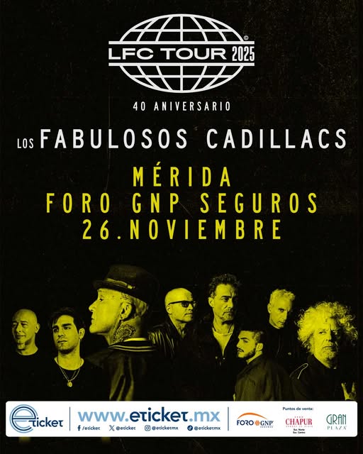 Así que prepárate, Mérida. Este 26 de noviembre, Los Fabulosos Cadillacs traerán toda su fuerza, carisma y sonido inconfundible al Auditorio GNP Seguros. Los boletos ya están disponibles en eticket.mx —¡no te quedes fuera de una noche que promete ser pura historia y emoción!