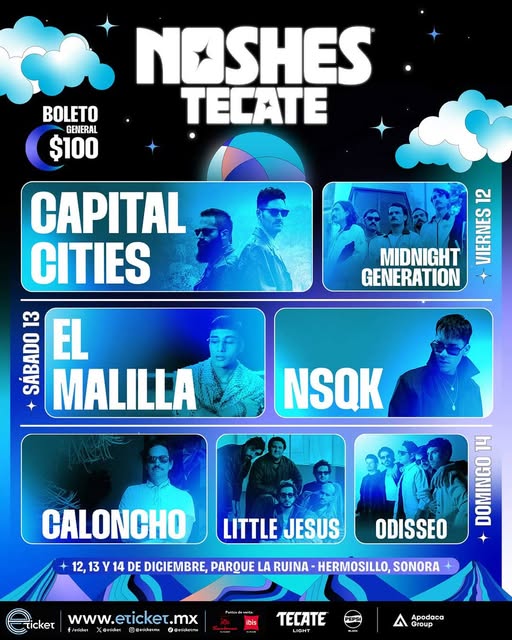 La cita será en Hermosillo, Sonora, a partir de las 18:00 horas, donde miles de asistentes podrán disfrutar de un lineup cuidadosamente curado para ofrecer una experiencia única cada día. Con una mezcla de sonidos frescos, nostalgia indie y beats irresistibles, el Noshes Tecate no solo es un festival de música, sino un punto de encuentro para quienes viven la cultura sonora con intensidad.