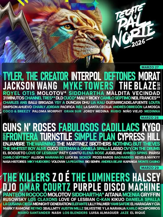 Entre los nombres más destacados se encuentran Tyler, The Creator, Guns N’ Roses, The Killers, Deftones y Halsey, quienes encabezan el line up más poderoso del año. A su lado, una impresionante lista de talentos latinoamericanos —como Grupo Frontera, Morat, Siddhartha, Panteón Rococó, Molotov y Camilo Séptimo— promete llenar de ritmo y emoción los escenarios del festival.